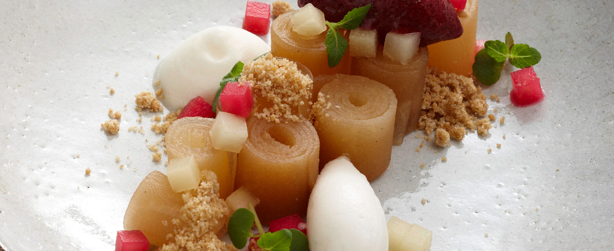 Nach verführerischen Vorspeisen und herausragenden Hauptgängen fehlt nur noch eins: ein süßes Finale à la Jens Rittmeyer. Feine Desserts mit besonderen Zutaten sind der krönende Abschluss eines grandiosen Menüs und der letzte Geschmack auf Ihrer Zunge, den Sie nach einem genussreichen Abend im Restaurant No4 mit nach Hause nehmen. An dieser Stelle hält der Sternekoch noch einige kulinarischen Überraschungen für Sie bereit. Vom Anfang bis zum Gourmet-Dessert sind die Rezepte von Jens Rittmeyer ein Spiegel seines unverkennbaren Stils einer regional-saisonalen Sterneküche. Seine Inspiration bekommt er in den prächtigen Obstgärten, die das Restaurant im Alten Land umgeben. Seit hunderten von Jahren stehen die Apfelbäume hier im Sommer in voller Blüte, während benachbarte Kirsch- und Mirabellenbäume bereits pralle Früchte tragen. Im Frühjahr sprießt in den Gärten der Rhabarber aus dem Boden und wird kurz darauf von herrlich süßen Erdbeeren abgelöst. Wen wundert es da, dass Jens im Umland alle Zutaten für mehr als nur ein köstliches Dessert findet? In seiner Sterneküche macht er die Vielfalt der Region erleb- und schmeckbar. Das Ergebnis sind spannende Kombinationen aus handverlesenen Zutaten wie eingelegten und frischen Früchten, aber auch würzigen Kräutern, die seine Kreationen perfekt abrunden.