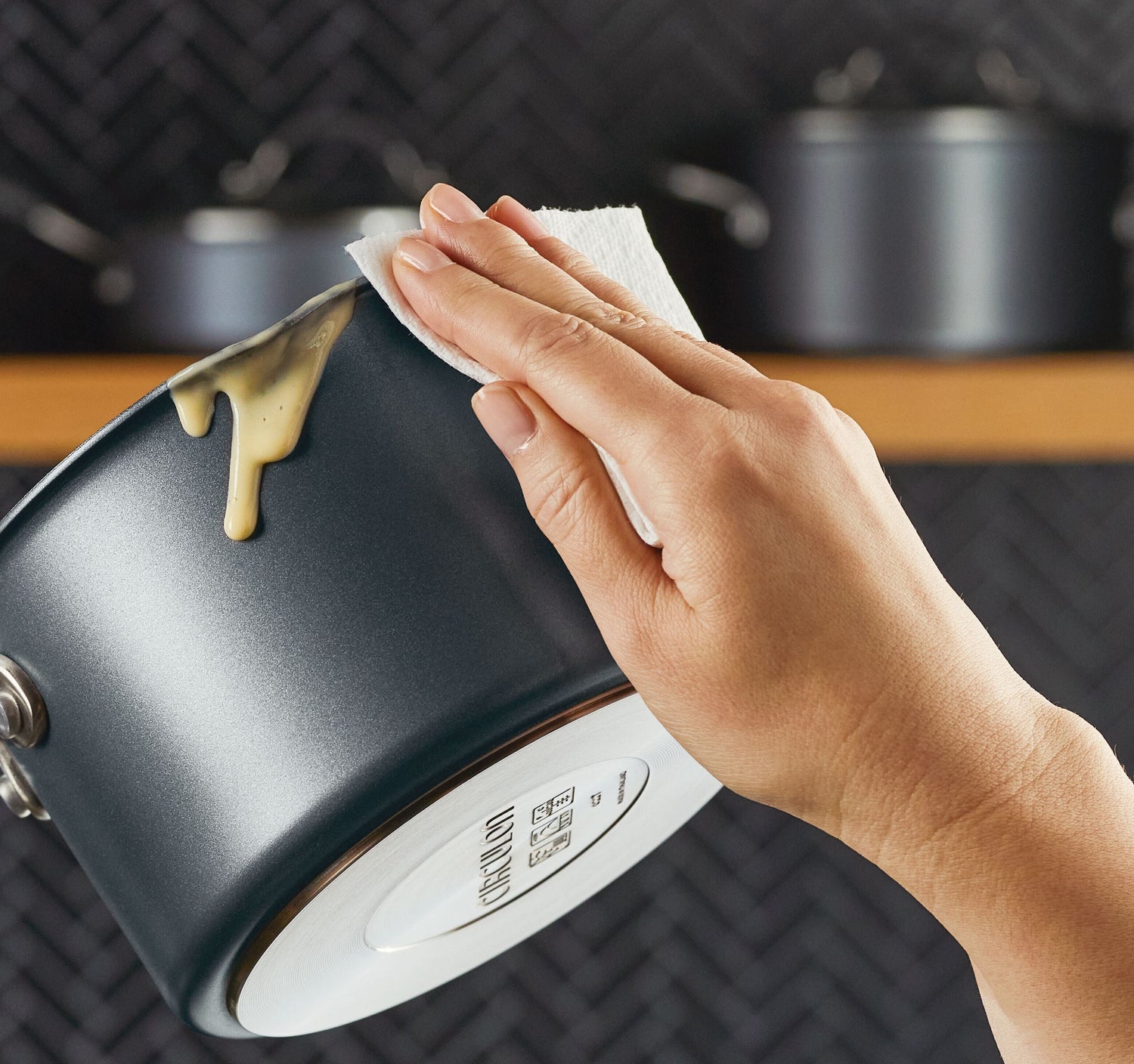 • Dreilagige ScratchDefense™ Antihaftbeschichtung: Für unschlagbare Robustheit und problemloses Entfernen der Speisen.