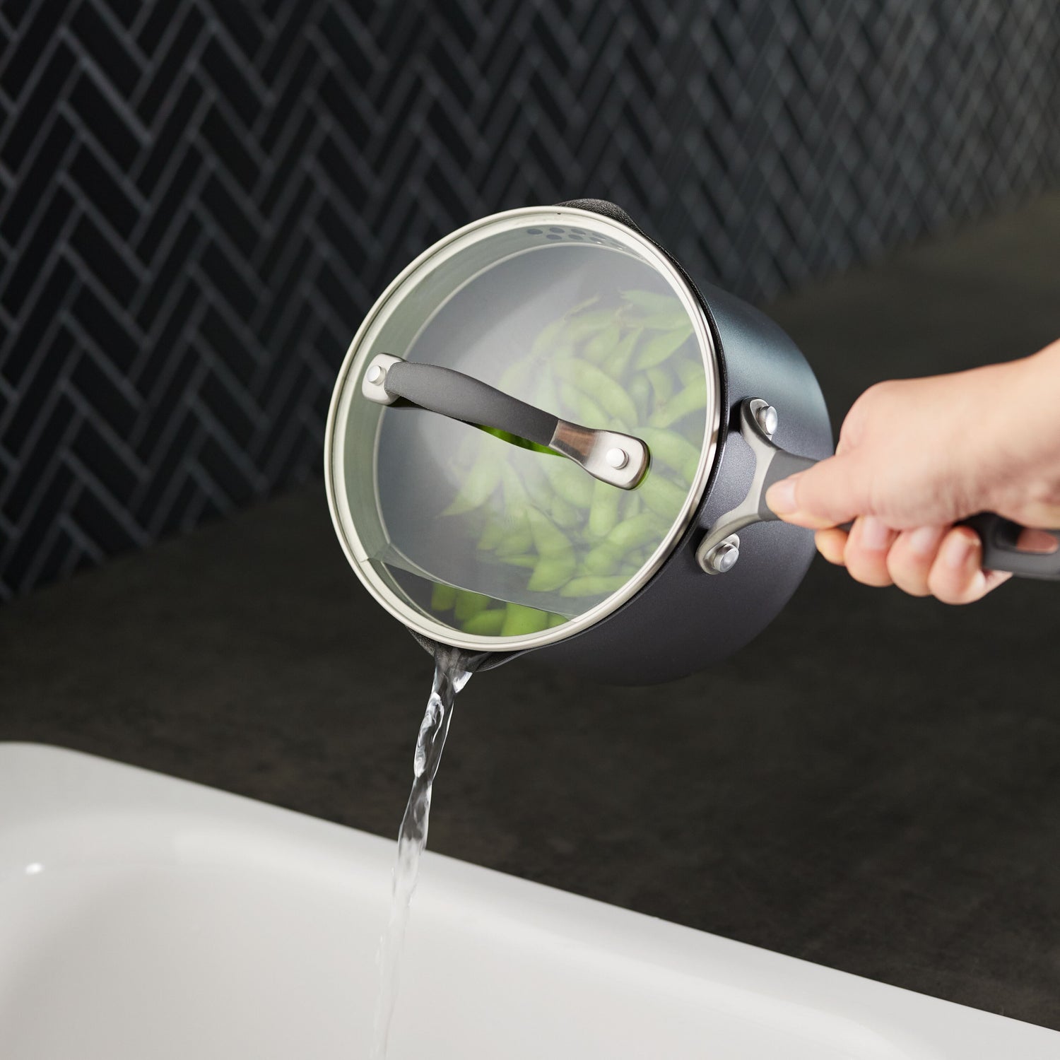 Ja, Sie erhalten zu jedem Topf den passenden Glasdeckel mit Siebfunktion. Dies ermöglicht Ihnen das sichere Abgießen von Kochwasser direkt durch den Deckelrand.